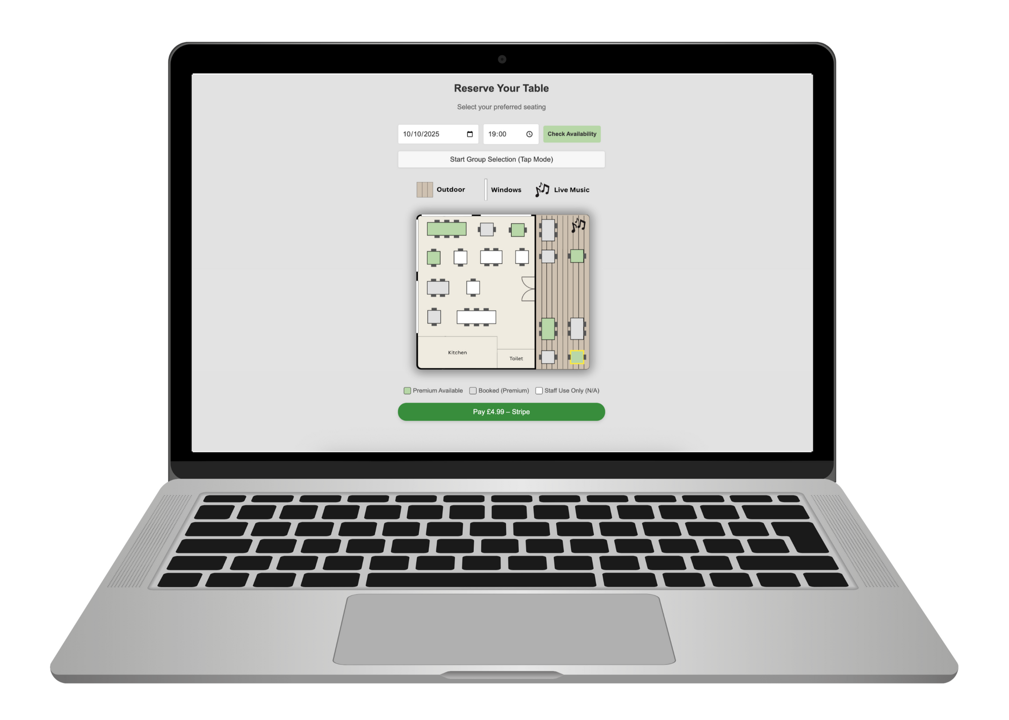 The customer who wants Table 5 (the window booth) has no way to easily secure it online. You give your most premium asset away for free.