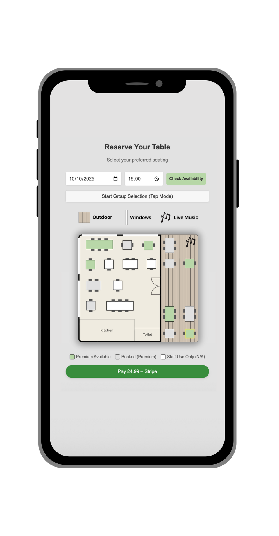4. Staff Notified: Your team is instantly notified: "Smith, 4 people, has booked Table 5 for 7pm." The money is immediately in your account.